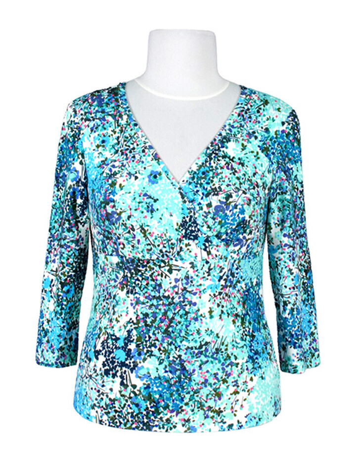 Shirt mit V-Ausschnitt und 3/4-Ärmel M
