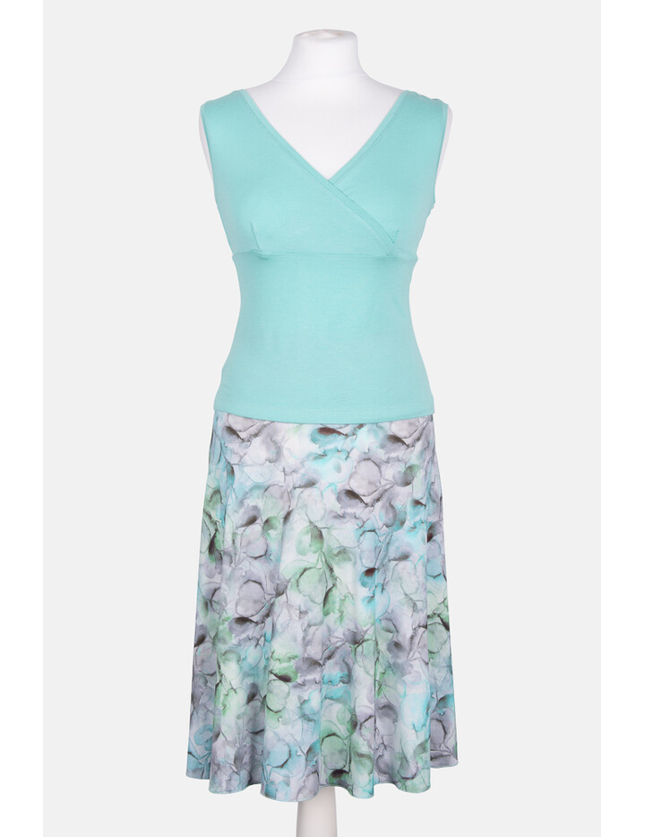 Für ein perfekt aufeinander Abgestimmtes Outfit ist das ärmellose mintfarbene Top mit V-Ausschnitt auch im Shop erhältlich.