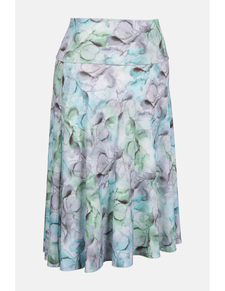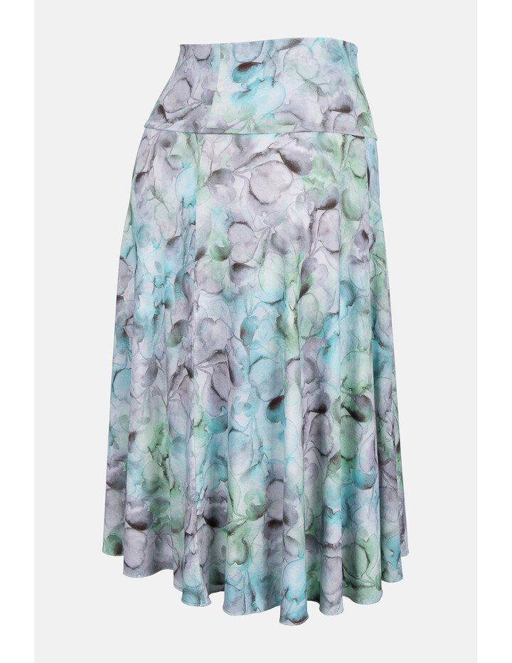 Das Material ist superbequem zu tragen. Der 10-12cm breite Bund (je nach Größe) ist doppellagig und sitzt auf der Hüfte ohne einzuengen. Ab der Hüfte fällt der Rock locker und der weite Saum umspielt die Knie.
