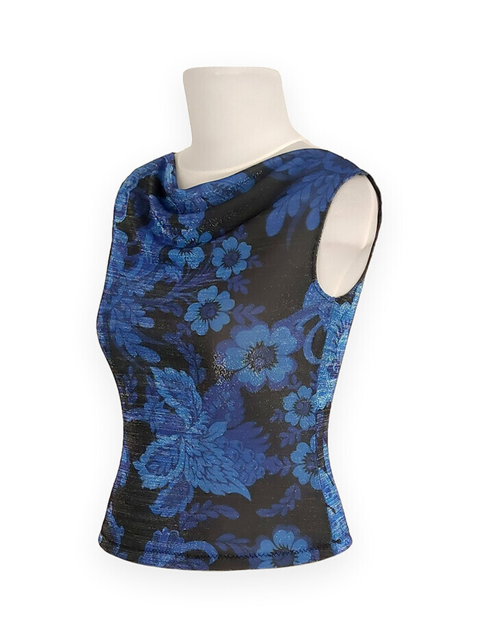 Ärmelloses Top mit Wasserfall-Ausschnitt und glänzenden Lurex