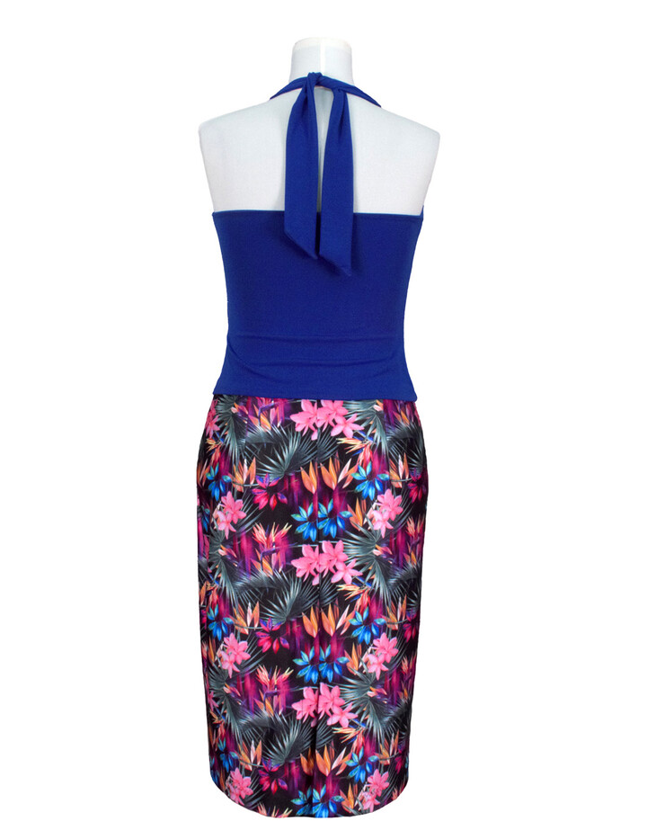 Der enge und sehr bequeme knielange Rock hat einen taillenhohen breiten Bund, der nicht einengt und dort bleibt, wo er bleiben soll. Für genügend Freiheit beim Tanzen sorgt ein 20cm hoher Schlitz im Rückenteil. Dieser Tangorock ist aus einem sehr festen und hochelastischen Material, ähnlich einem Badeanzugstoff, gefertigt.